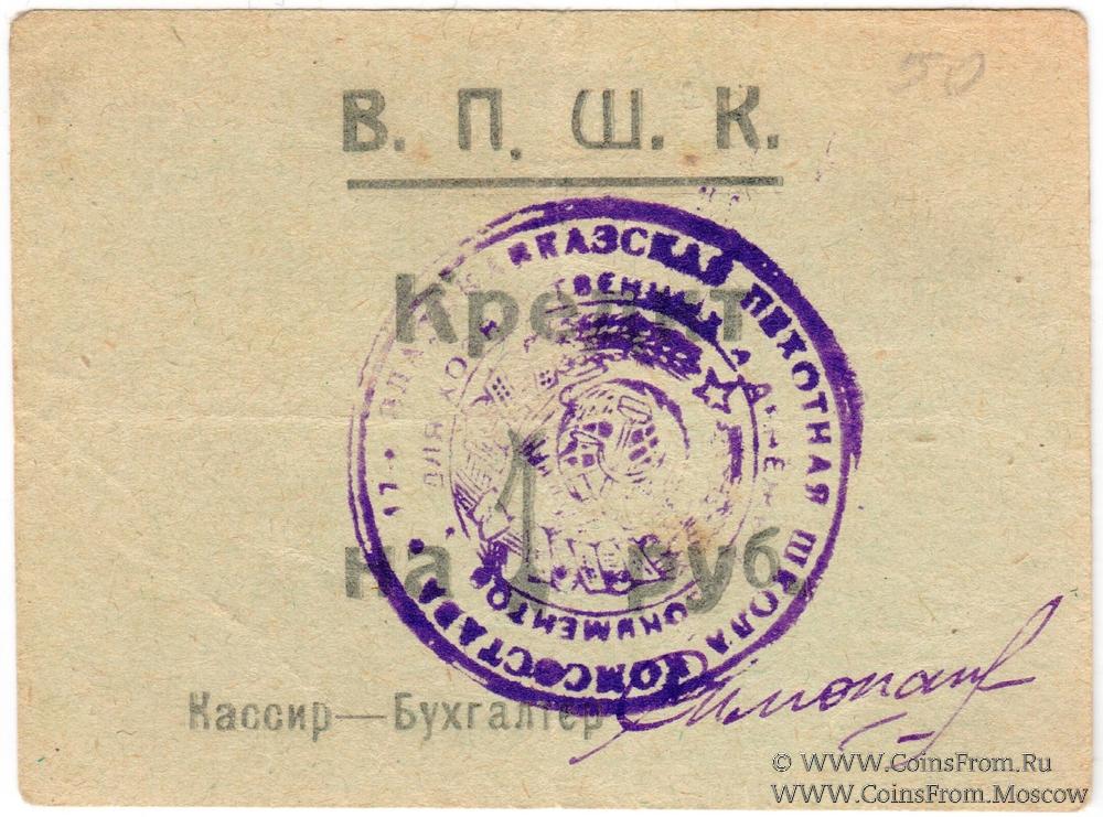 Круглая печать: "17-я ВЛАДИКАВКАЗСКАЯ ПЕХОТНАЯ ШКОЛА КОМСОСТАВА * для хозяйственных и денежных документов *" (по кругу в две строки) / Герб СССР (по центру).