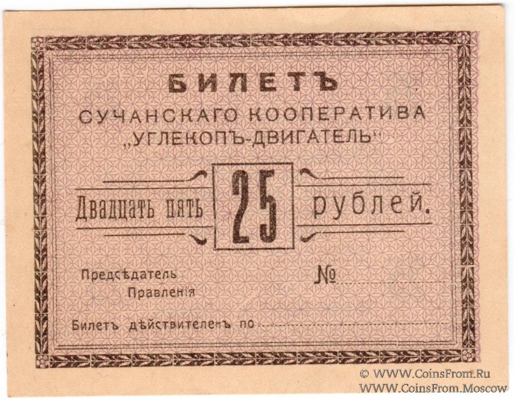 Билет без даты (1919 г.). Бланк. Сучанский Кооператив "Углекоп-Двигатель".