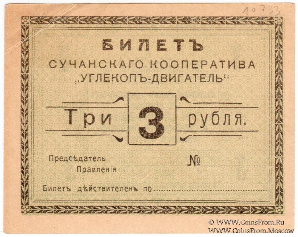 Билет без даты (1919 г.). Бланк. Сучанский Кооператив "Углекоп-Двигатель".