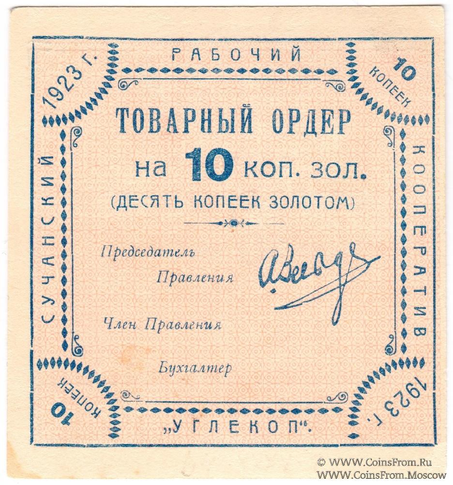 Товарный ордер (золотом) 1923 г. Серия Д. Сучанский Рабочий Кооператив "Углекоп".