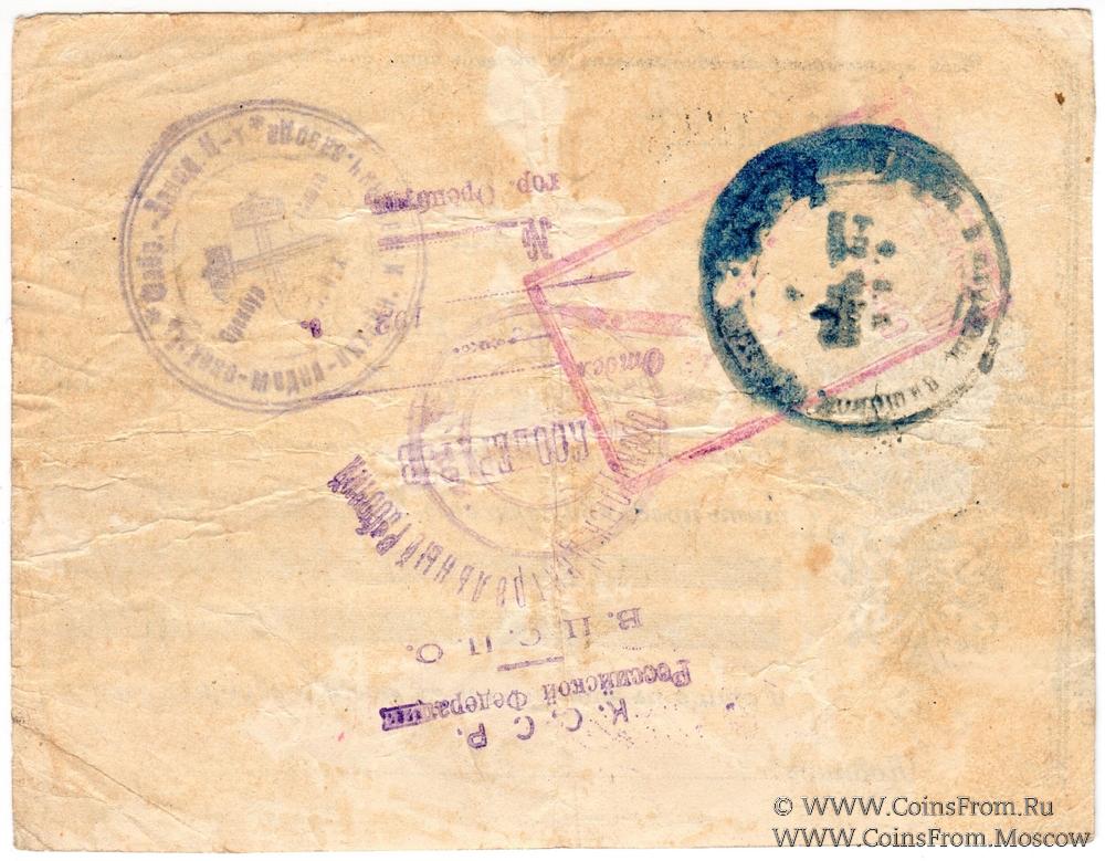 Чек 1923 г. Номер 4-значный. Три печати и два штампа на реверсе. Сберегательная касса Оренбургского общества потребителей "Самопомощь".