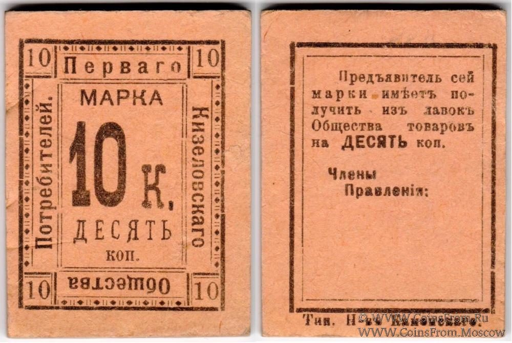 Марка без даты. Толстый картон. Первое Кизеловское Общество Потребителей.