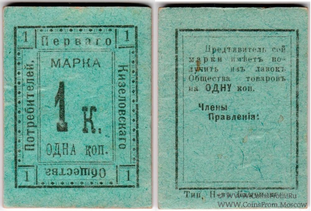 Марка без даты. Толстый картон. Первое Кизеловское Общество Потребителей.