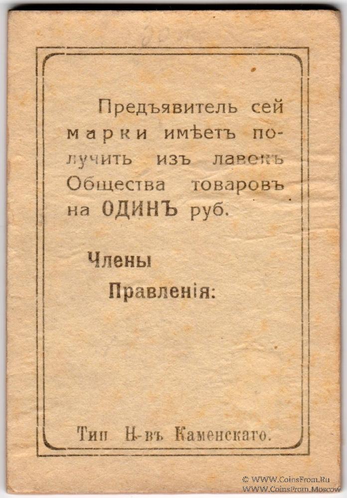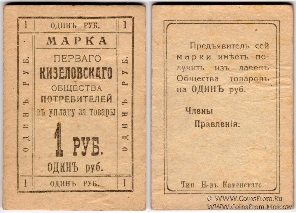 Марка. Толстый картон. Первое Кизеловское Общество Потребителей.