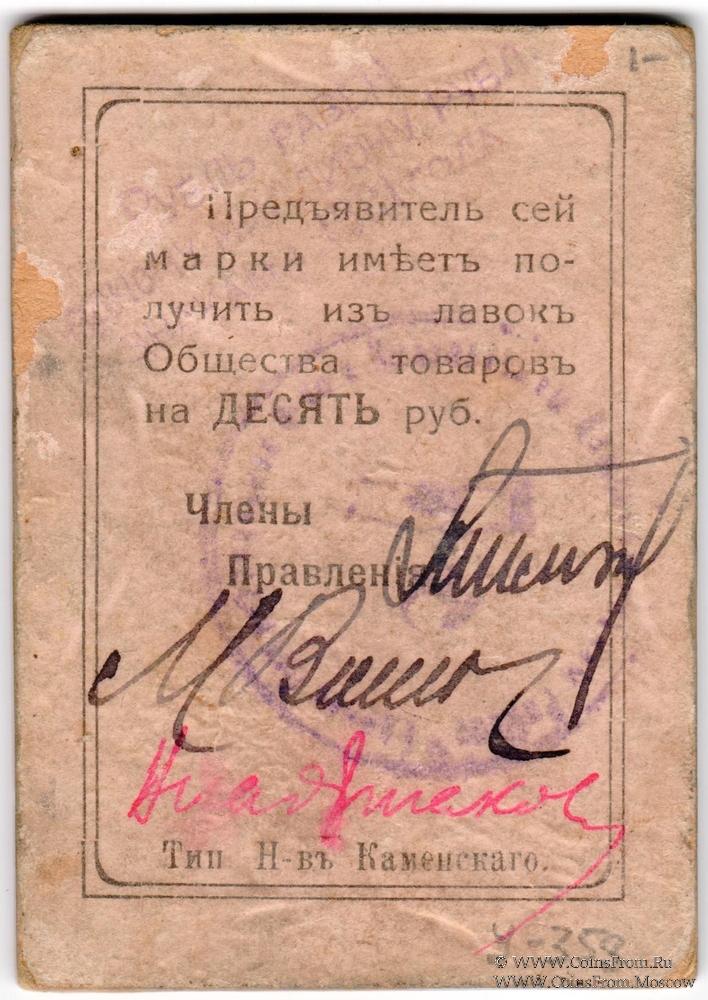 Марка. Толстый картон. Надпечатка на аверсе и реверсе. Первое Кизеловское Общество Потребителей.