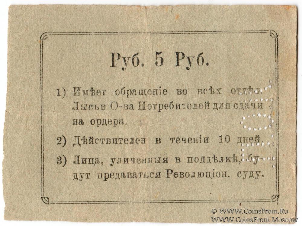 Ордер без даты (1918 г.). Перфорация "Л.О.П.". Лысьвенское Общество Потребителей (Л.О.П.).