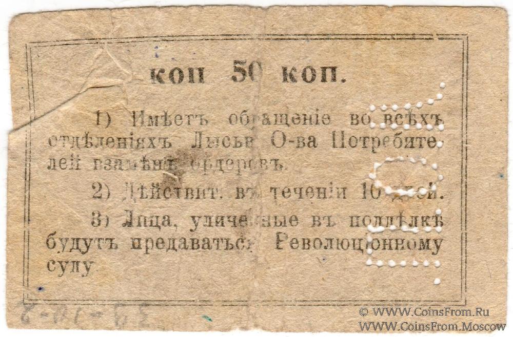 Ордер без даты (1918 г.). Перфорация "Л.О.П.". Лысьвенское Общество Потребителей (Л.О.П.).