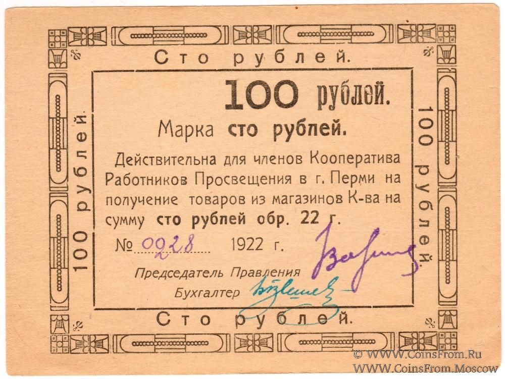 Марка 1922 г. Бумага желтая. Без печати. Кооператив Работников Просвещения в г. Перми.