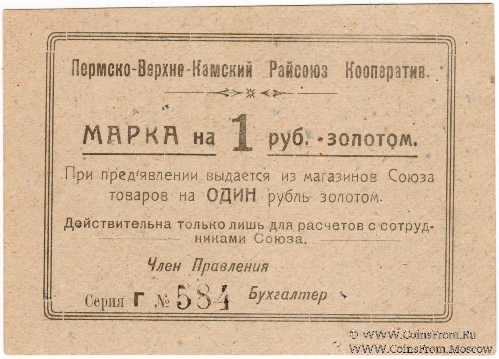 Марка без даты (1923 г.) в рублях золотом. Серия Г. Пермско-Верхне-Камский Райсоюз Кооперативов.