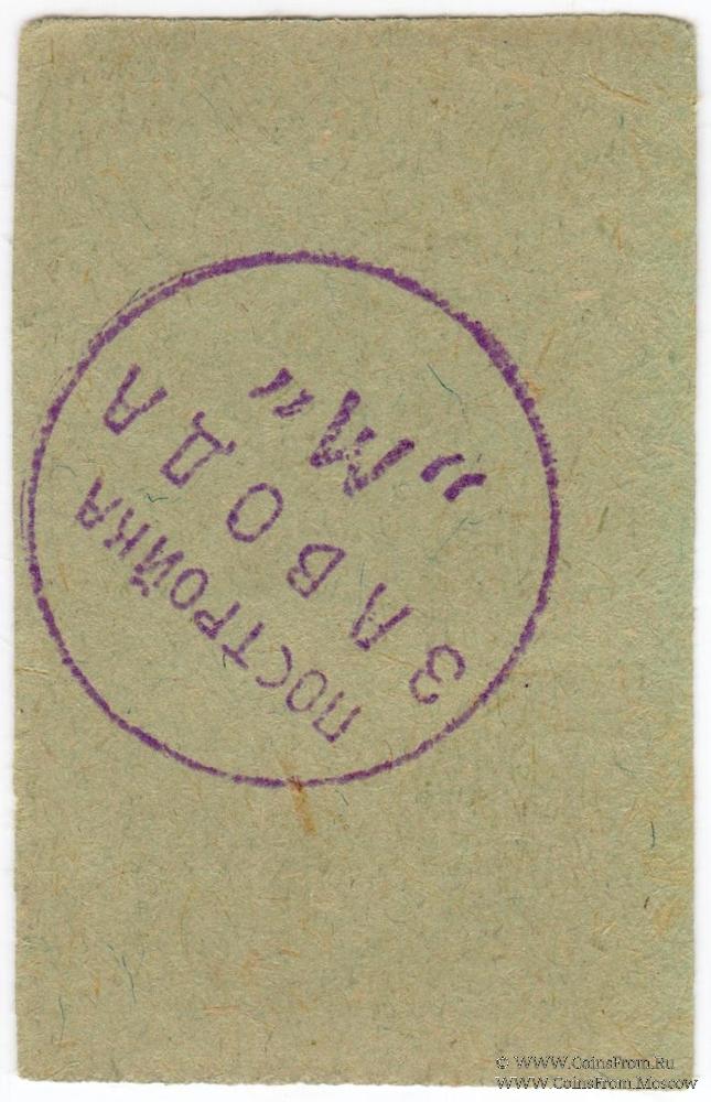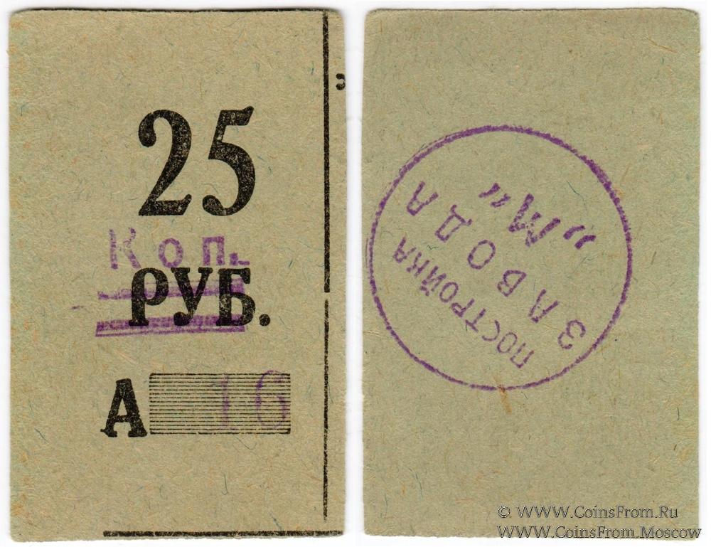 Расчетный бон. Серия А (зелёные). На корешке 25 рублей. На реверсе печать. Строительство завода №19. ПЕРМСТРОЙ.