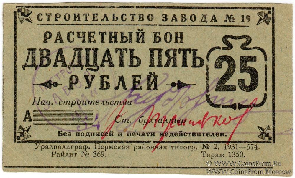 25 рублей 1931 г. (Пермь)