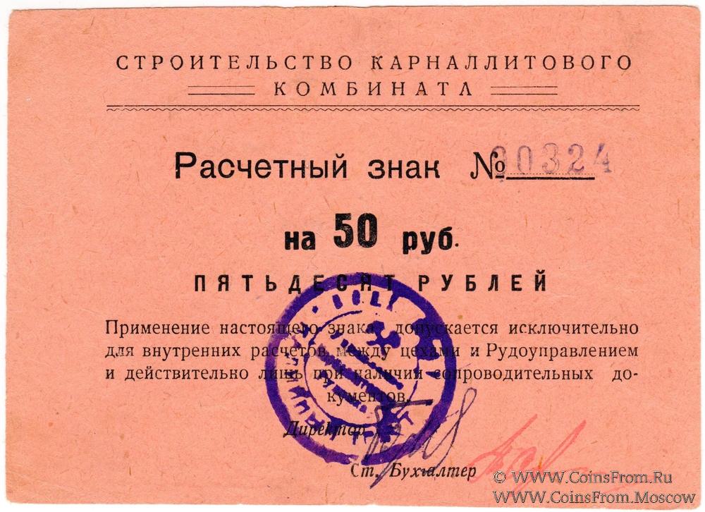 Расчетный знак без даты. Строительство карналлитового комбината.