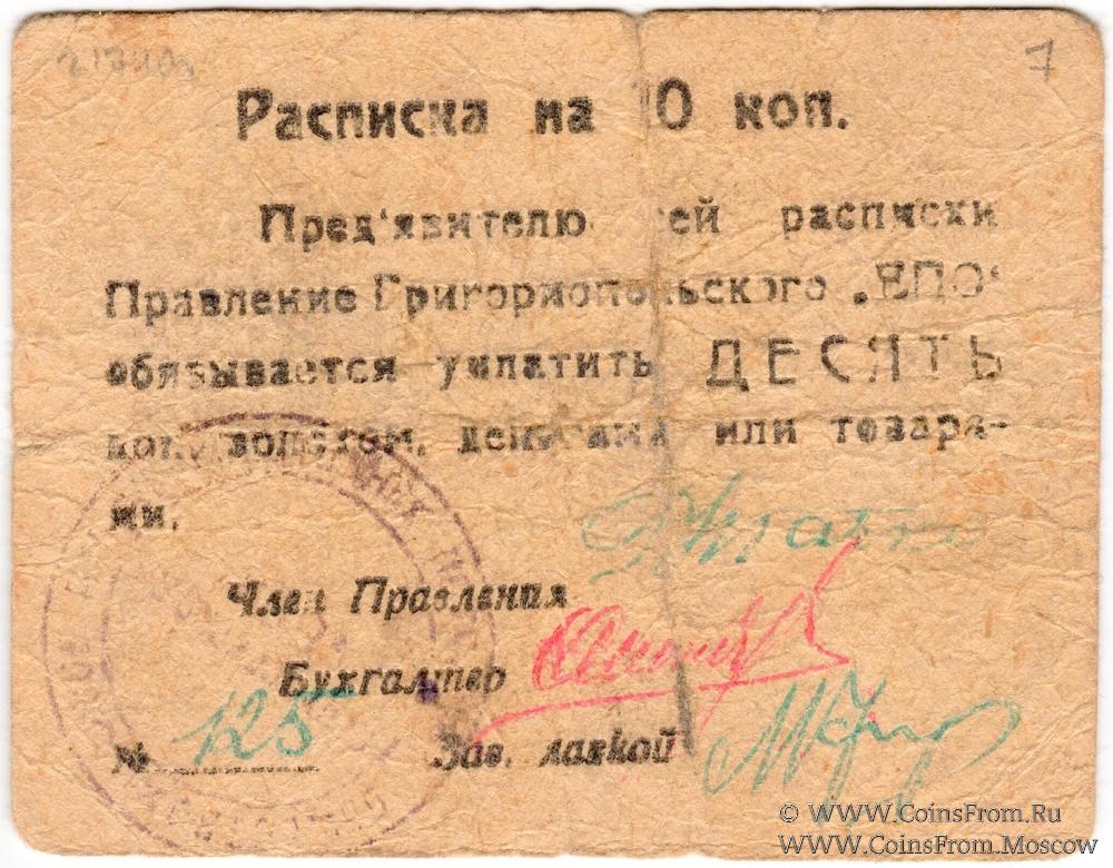 Печать круглая: "Г.ГРИГОРИОПОЛЯ "ЕПО"" (по центру в две строки) / "ЕДИНОЕ РАБОЧЕ-КРЕСТЬЯНСК. ПОТРЕБИТ. ОБЩЕСТВО *" (по кругу).