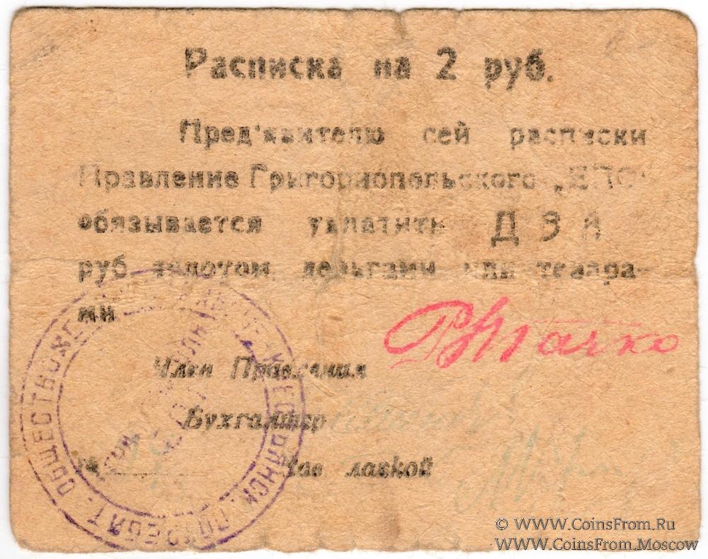 Печать круглая: "Г.ГРИГОРИОПОЛЯ "ЕПО"" (по центру в две строки) / "ЕДИНОЕ РАБОЧЕ-КРЕСТЬЯНСК. ПОТРЕБИТ. ОБЩЕСТВО *" (по кругу).