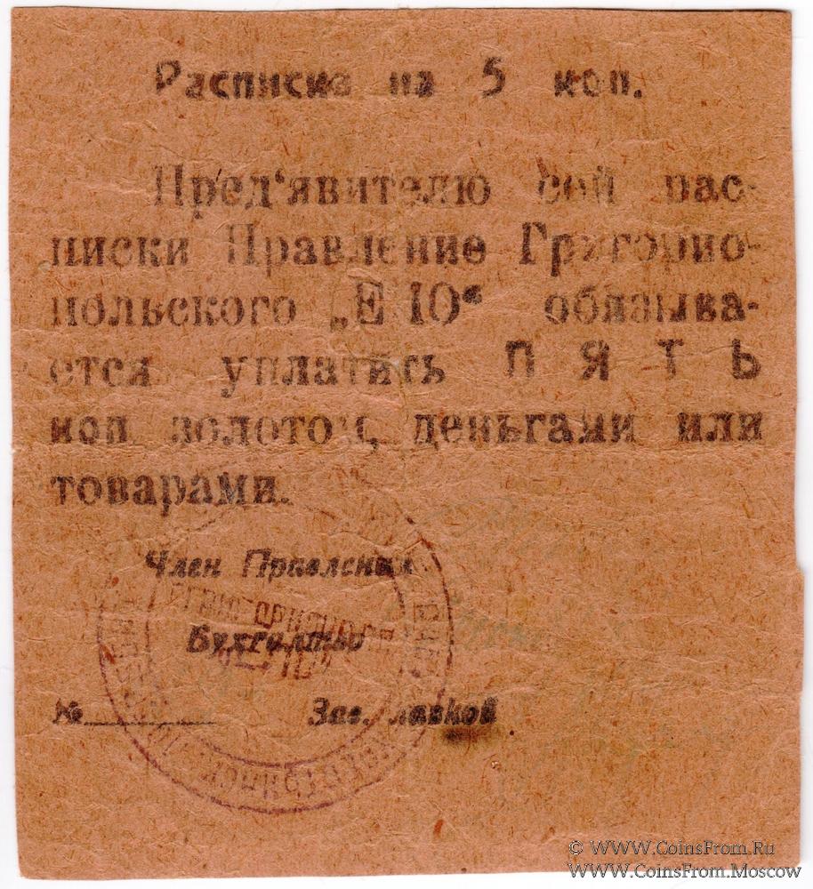Печать круглая: "Г.ГРИГОРИОПОЛЯ "ЕПО"" (по центру в две строки) / "ЕДИНОЕ РАБОЧЕ-КРЕСТЬЯНСК. ПОТРЕБИТ. ОБЩЕСТВО *" (по кругу).