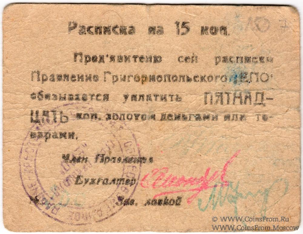 Печать круглая: "Г.ГРИГОРИОПОЛЯ "ЕПО"" (по центру в две строки) / "ЕДИНОЕ РАБОЧЕ-КРЕСТЬЯНСК. ПОТРЕБИТ. ОБЩЕСТВО *" (по кругу).