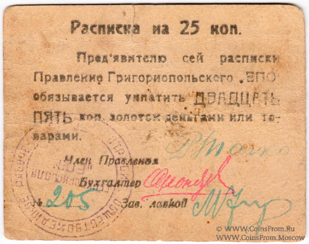 Печать круглая: "Г.ГРИГОРИОПОЛЯ "ЕПО"" (по центру в две строки) / "ЕДИНОЕ РАБОЧЕ-КРЕСТЬЯНСК. ПОТРЕБИТ. ОБЩЕСТВО *" (по кругу).