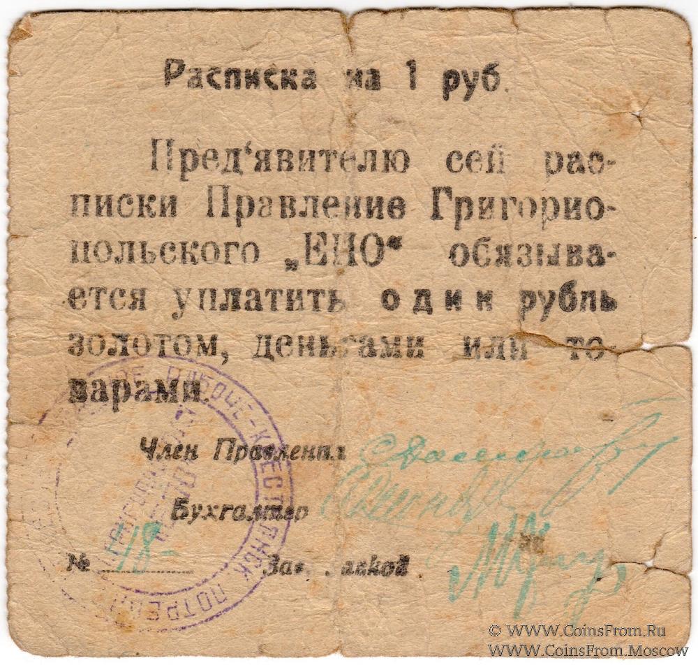 Печать круглая: "Г.ГРИГОРИОПОЛЯ "ЕПО"" (по центру в две строки) / "ЕДИНОЕ РАБОЧЕ-КРЕСТЬЯНСК. ПОТРЕБИТ. ОБЩЕСТВО *" (по кругу).