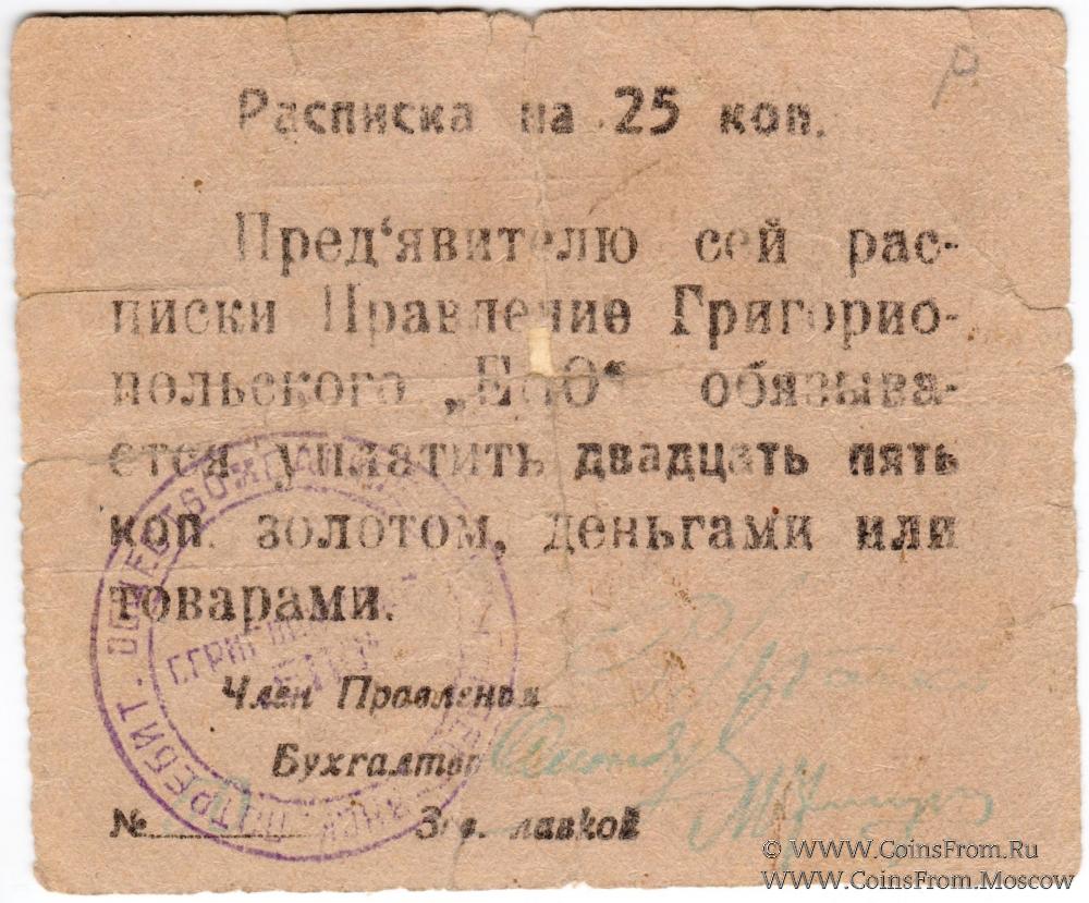 Печать круглая: "Г.ГРИГОРИОПОЛЯ "ЕПО"" (по центру в две строки) / "ЕДИНОЕ РАБОЧЕ-КРЕСТЬЯНСК. ПОТРЕБИТ. ОБЩЕСТВО *" (по кругу).