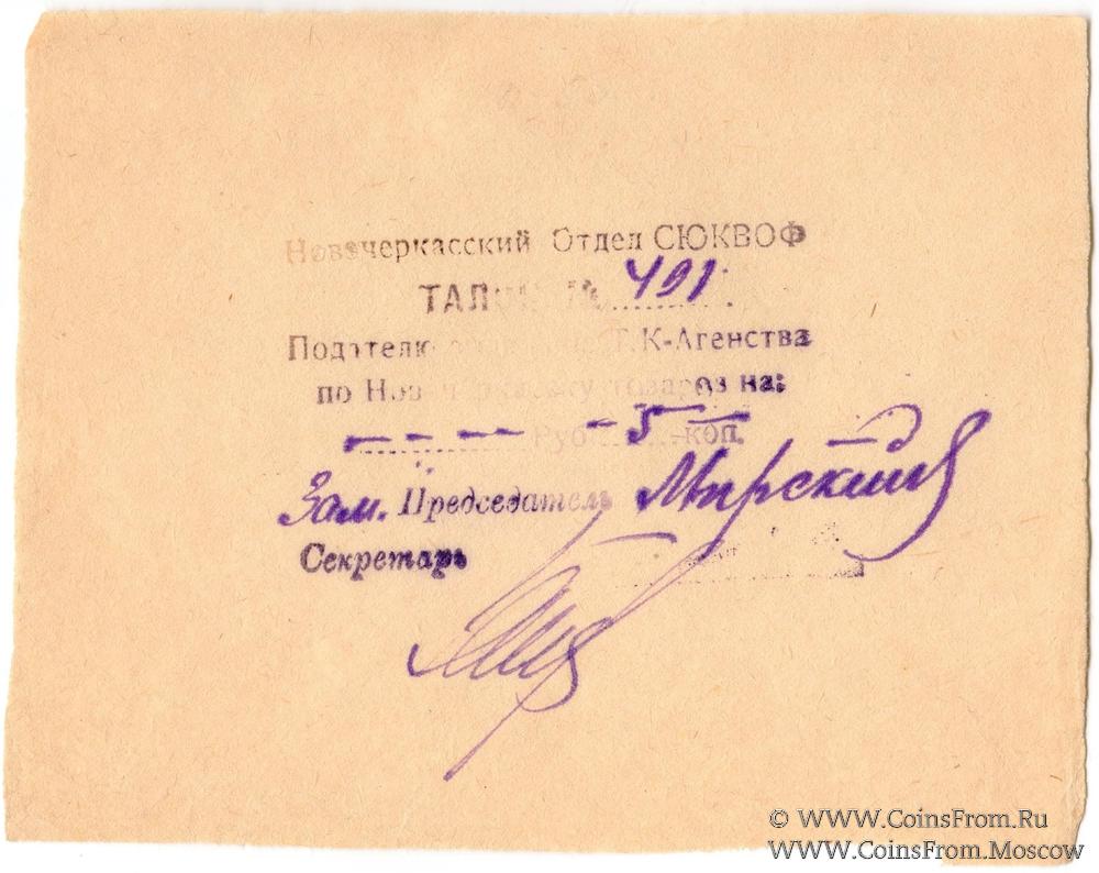 Талон без даты. Новочеркассктй Отдел СЮК ВОФ (Секция Юнных Коллекционеров Всесоюзного Общества Филателистов).