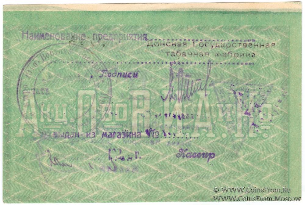 Реверс: надпечатка Донской Государственной табачной фабрики.