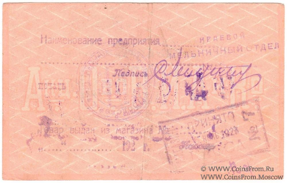 Аверс: надпечатка Единого Потребительского Общества (Е.П.О.). Реверс: надпечатка Краевого Мельничного Отдела, 06 ноября 1923 г.