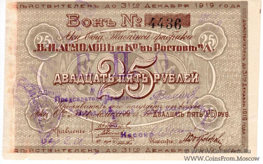 Бон Акционерного Общества Табачной фабрики "В.И. Асмолов и Ко".