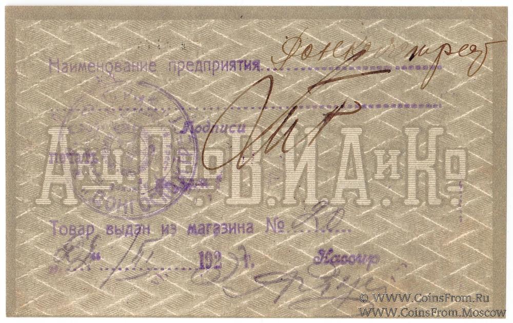 Бон. Аверс: надпечатка (штамп) "Е.П.О.", "ОПЛАЧЕНО"; печать треугольной формы. На реверсе: печать Правления Донгоскожтреста. Акционерное Общество Табачной фабрики "В.И. Асмолов и Ко".