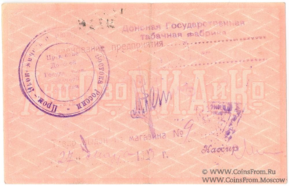 Реверс: надпечатка Донской Государственной табачной фабрики.
