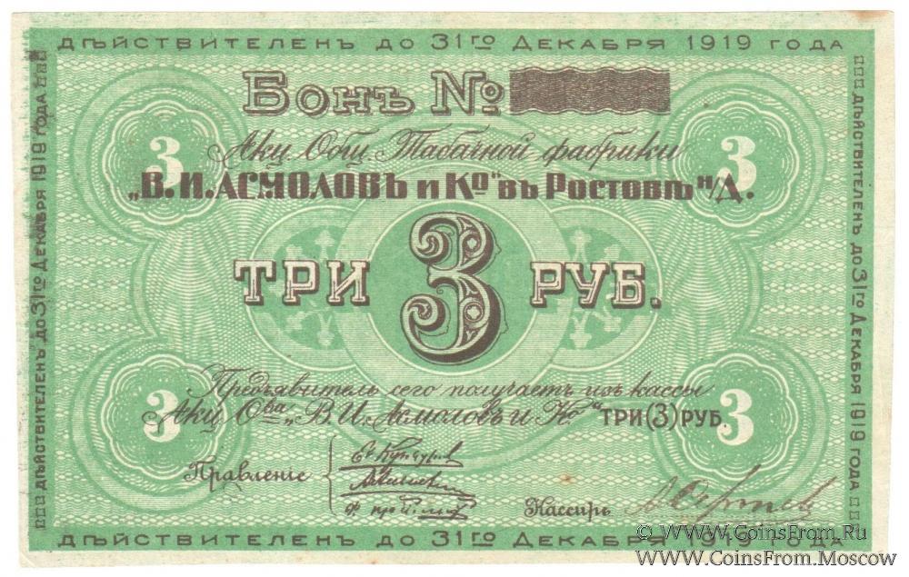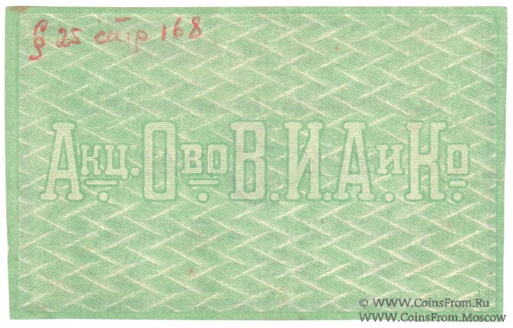 Бон. Бланк. Акционерное Общество Табачной фабрики "В.И. Асмолов и Ко".