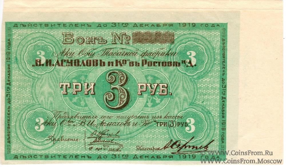 3 рубля 1919 г. (Ростов на Дону) БРАК
