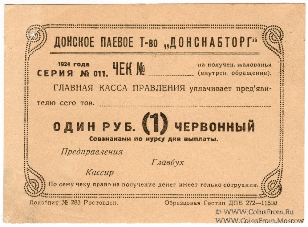 Ордер 1924 г. в червонных рублях. Бланк. Без номера. Донское Паевое Товарищество "ДОНСНАБТОРГ" Д.С.Н.Х.