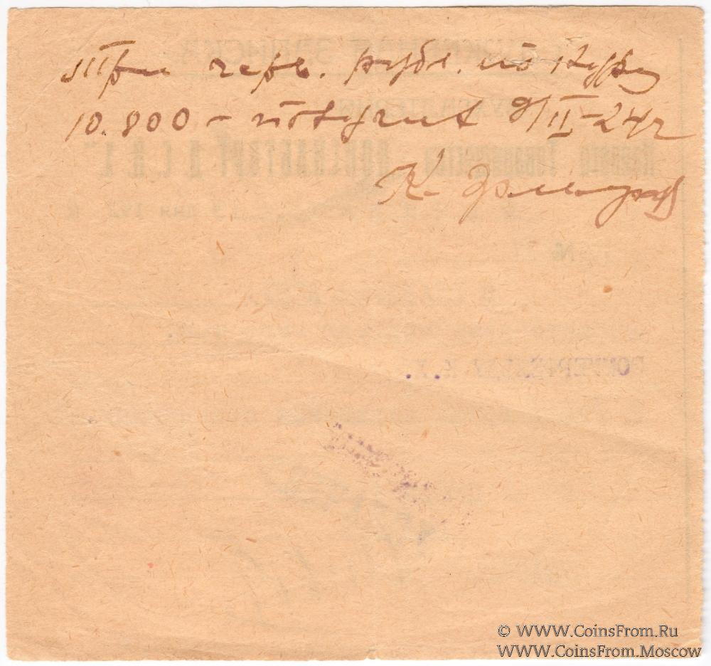 Служебная записка в червонных рублях совзнаками 1924 г. (По курсу 10.800). Паевое Товарищество "Донснабторг" Д.С.Н.Х.