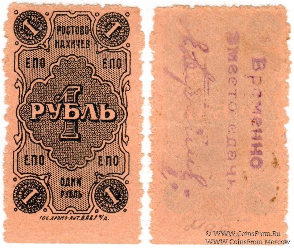 Главная > Магазин > Моя коллекция > Банкноты России периода Первой Мировой Войны, Гражданской войны, революции и первых лет Советской власти > Частные боны Гражданской войны > Ростовская область > Ростов на Дону. Донская область. > Единое Потребительское Общество (Е.П.О.) > 1 рубль 1923 г. (Ростов на Дону)