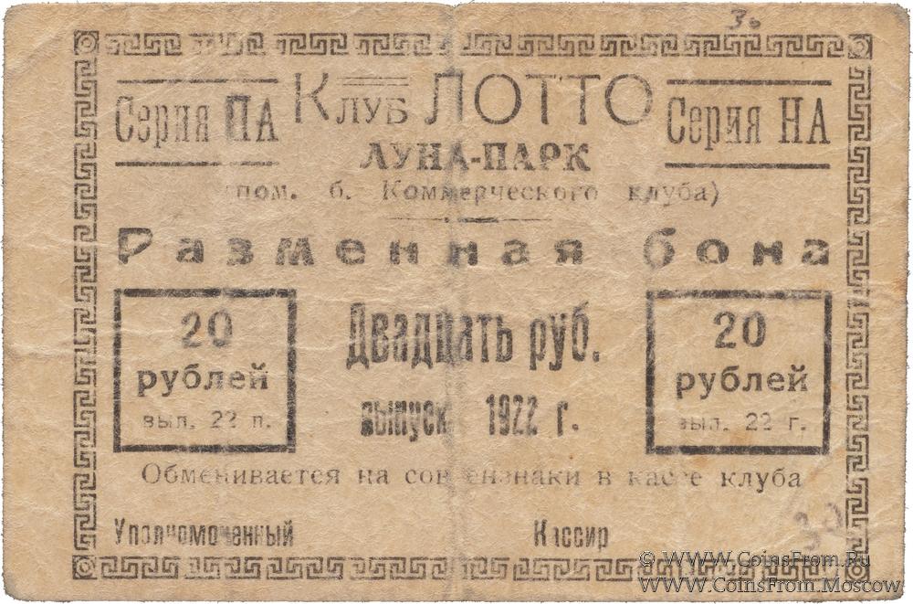 Разменная бона. Клуб-лотто "Луна-Парк".