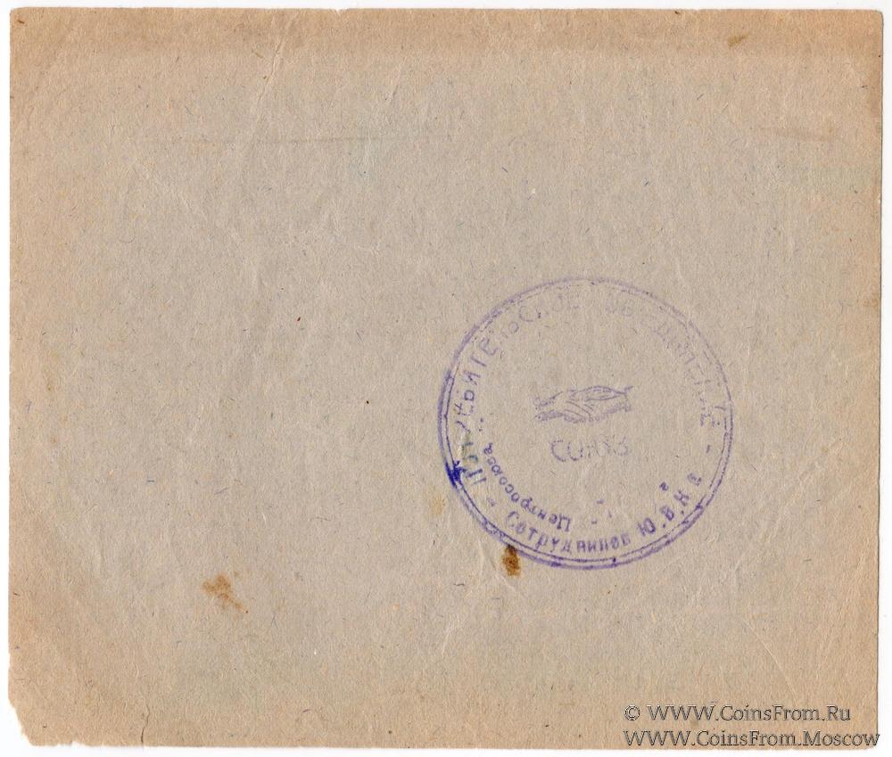 Круглая печать (на реверсе): "ПОТРЕБИТЕЛЬСКОЕ ОБ`ЕДИНЕНИЕ - Сотрудников Ю.В.К.К. / Центросоюза" (по кругу в две строки) / "СОЮЗ" (по центру с изображением рукопожатия).