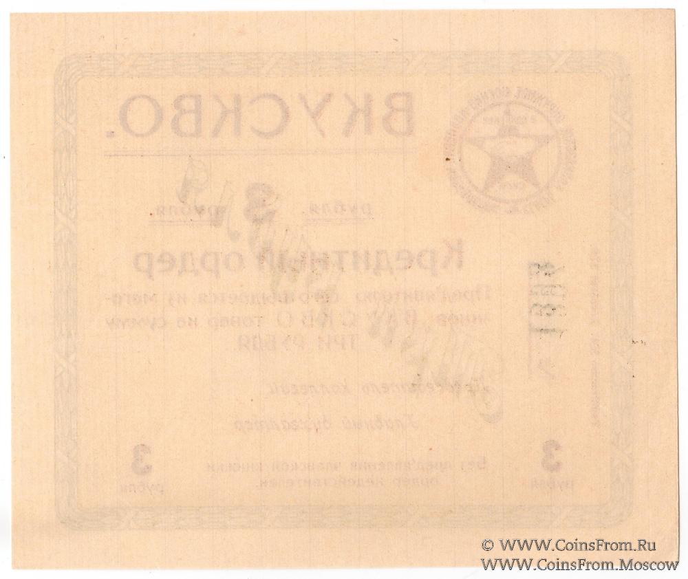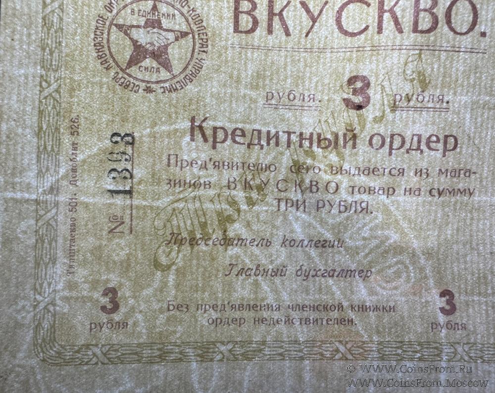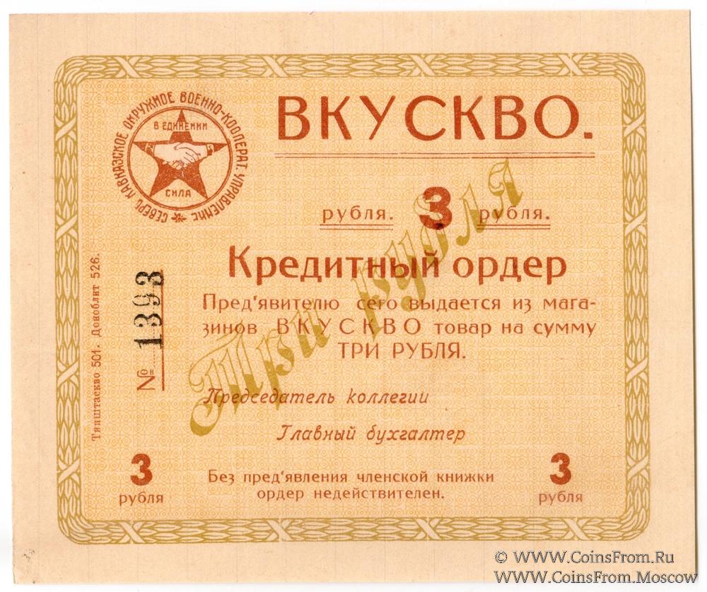 Кредитный ордер без даты. Бланк. Элементы водяного знака. Северо-Кавказское Окружное Военно-Кооперативное Управление (ВКУ СКВО).