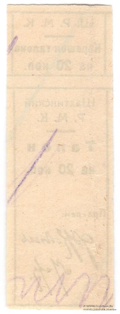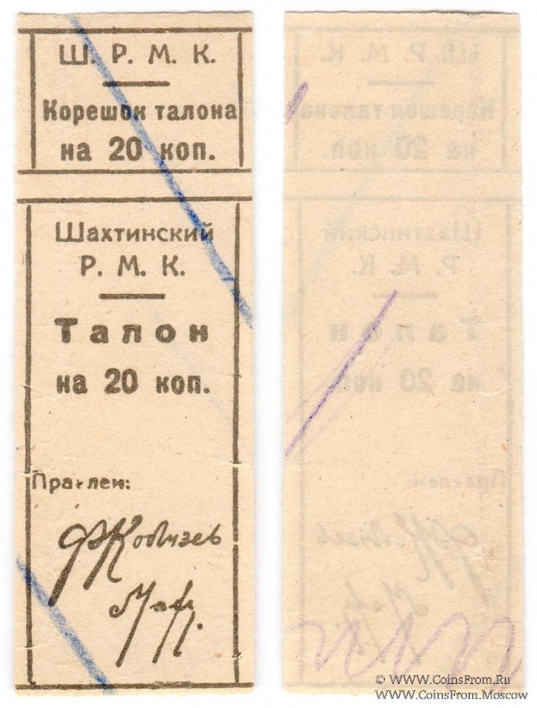 Талон без даты. Бумага белая. Шахтинский Рабочий Многолавочный Кооператив (Р.М.К.).