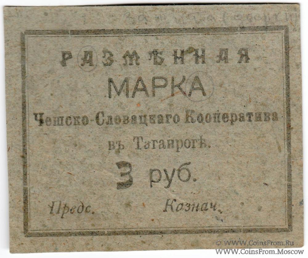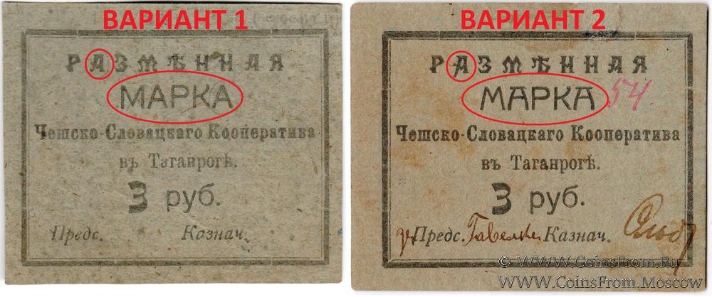 Разменная марка. Вариант 1 (шрифт слова "МАРКА"). Серый оттенок бумаги. Чешско-Словацкий Кооператив в Таганроге.
