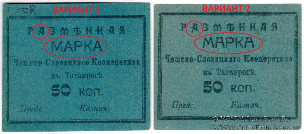 Разменная марка. Вариант 2 (шрифт слова "МАРКА"). Чешско-Словацкий Кооператив в Таганроге.