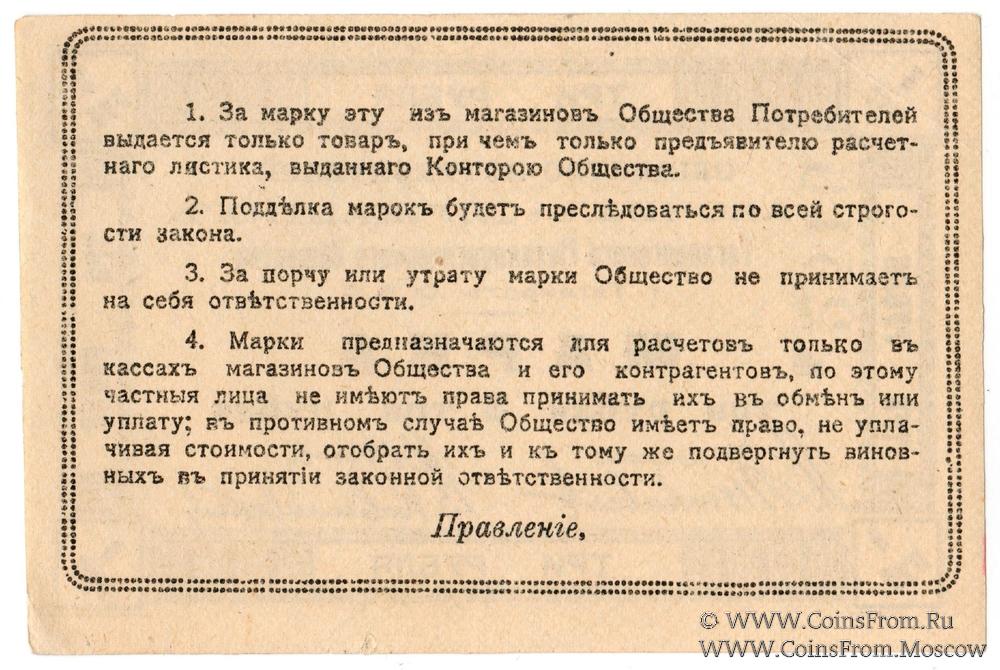 Марка без даты. Бланк с номером. Общество Потребителей рабочих и служащих. Таганрогское Металлургическое общество.