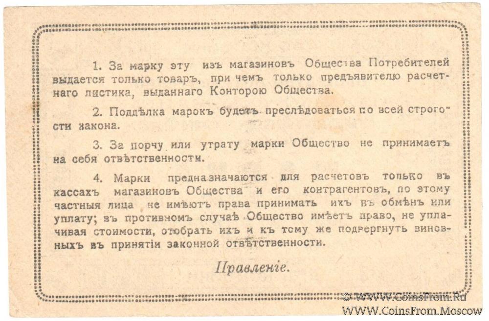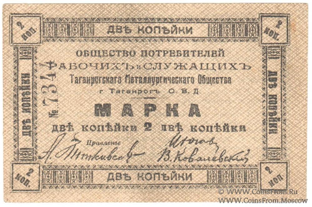 Марка без даты. Бланк с номером. Общество Потребителей рабочих и служащих. Таганрогское Металлургическое общество.