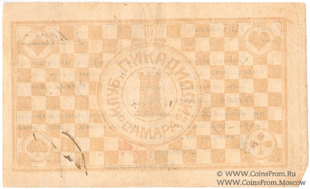 Клубный разменный знак без даты. Прямоугольный штамп Администрации Клуба на аверсе. Шахматный клуб "Пикадилли".