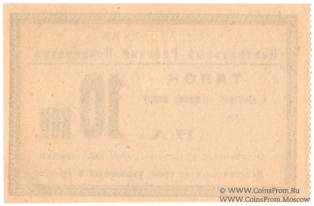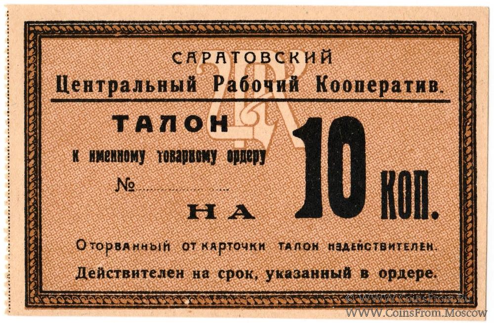 Талон к именному товарному ордеру без даты (1919 г.). Саратовский Центральный Рабочий Кооператив.