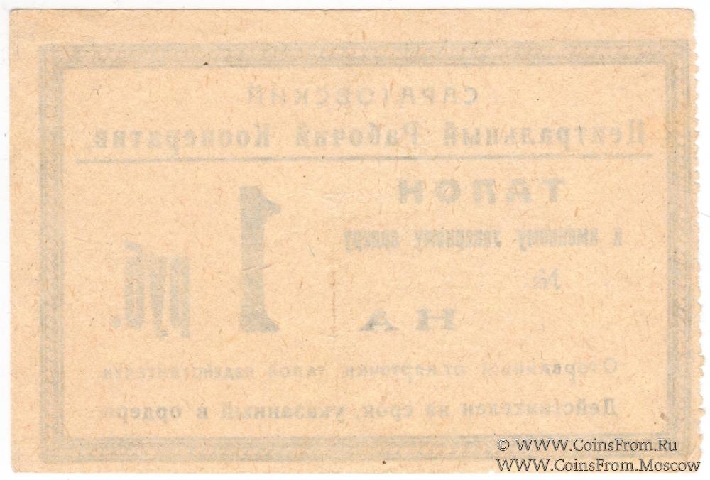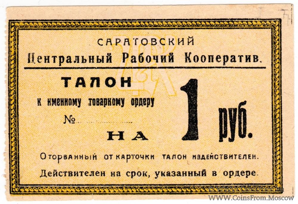 Талон к именному товарному ордеру без даты (1919 г.). Саратовский Центральный Рабочий Кооператив.