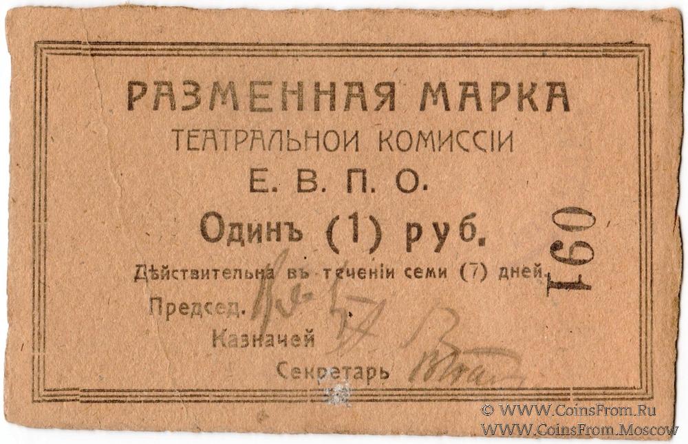 Разменная марка без даты. Театральная Комиссия Е.В.П.О. (Екатеринбургское Вольное Пожарное Общество).