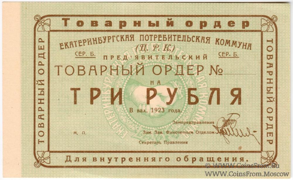 3 рубля 1923 г. (Екатеринбург). Серия Б.
