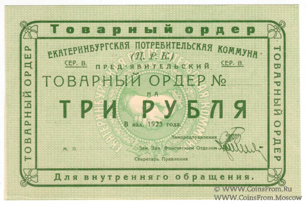 3 рубля 1923 г. (Екатеринбург). Серия В.