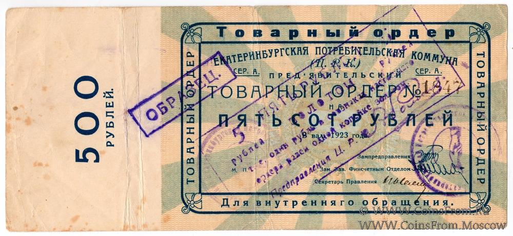 Товарный ордер 1923 г. (золотом).