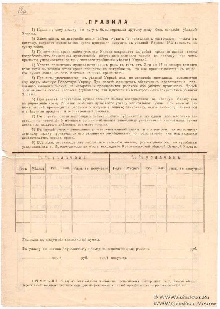 Заемное письмо. Красноуфимское Уездное Земство.